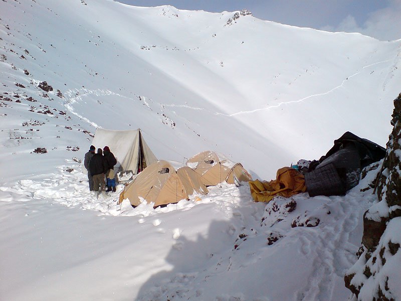 PAsiekus trecia stovyklaviete - tolumoje matyti Stok-La pereja (4900m) i kaire nuo astriu uolu / Having reached the 3rd campsite - in the background one can see the Stok-La pass (4900m) to the left of sharp rocks