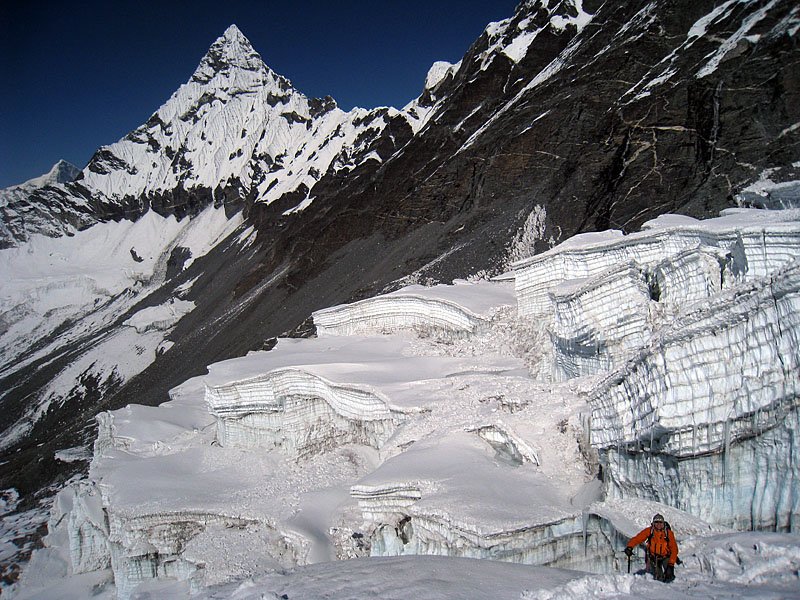 I was worried that one of those seracs would collapse as the sun was already quite high / Nerimavau, kad vienas is ledo luitu nukris, nes saule jau buvo gana aukstai