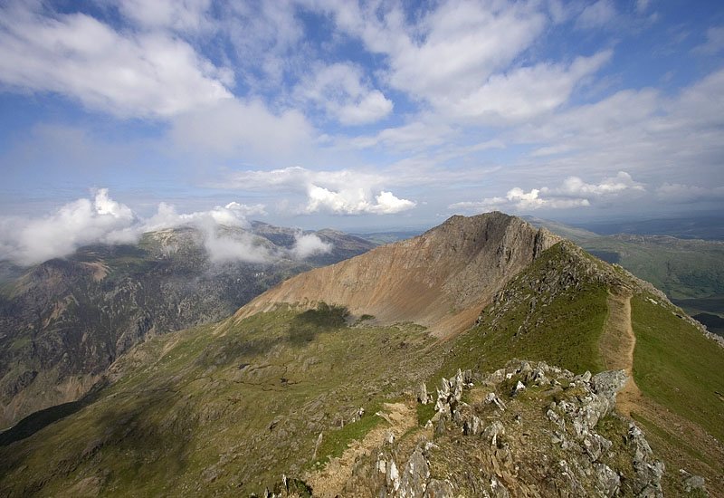 On the way down, Tryfan visible in the background / Leidziantis zemyn, Tryfan'as matyt tolumoje