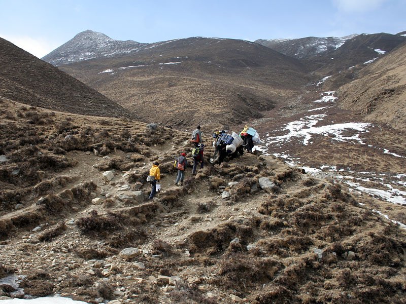 Linksmai kylame i pirmaja aukstumine pereja, kuri siekia virs 5,000m virs juros lygio / happily ascending towards the first high altitude pass (over 5,000m above sea level)