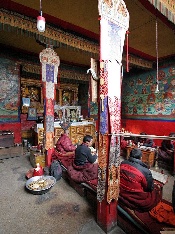 Ronkbuko vienuolynas, kuriame dabar gyvena 11 vienuoliu ir 8 vienuoles (anskciau gyveno 600 is viso) - desineje Everestas/ Rongbuk monastery, which currently houses 11 monks and 8 nuns (it used to be 300 monks and 300 nuns before) - Everest can be seen on the right