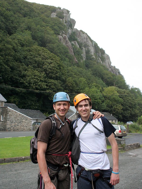 The couple climbing at "E1, or Extreme 1" level / Porele lipa "E1, arba ekstremalia-1" trasa